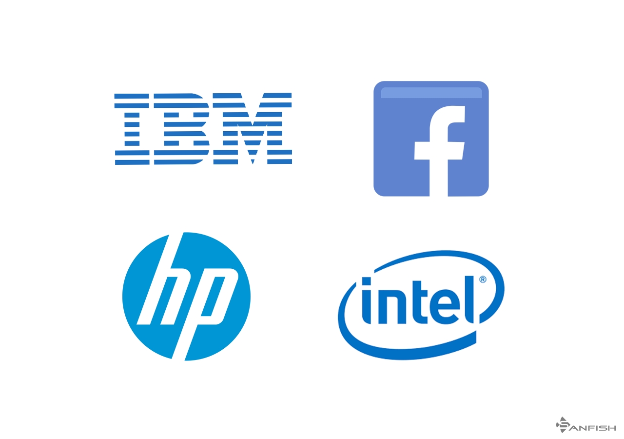 你一定注意到許多科技品牌的標(biāo)志是藍色的,比如FacebookIBMIntelHP,他們使用這種被動色來象征自由,信任,智慧和進步。